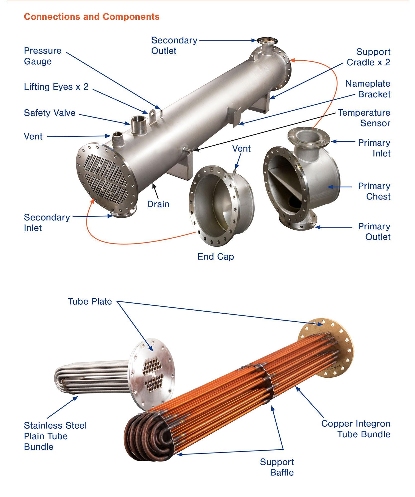 Tubes of a shell and tube heat exchanger are welded or extruded and made from carbon steel, stainless steel, titanium, Inconel, or copper.