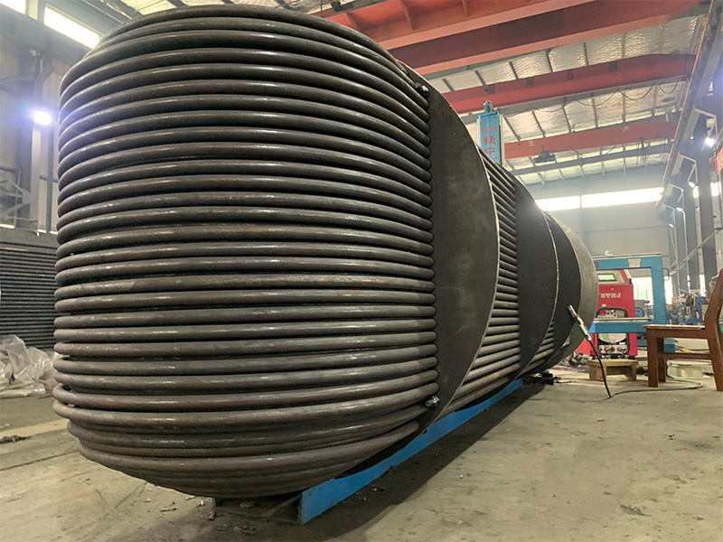 Tube bundle collected many groups of pipe densely packed as a radiation core, outside installed with a tubular tank shell made from the pressure vessel steel plate, when hot liquid or gases are circulated in the tube bundle, the large combined surface area of the tubes will bring efficient heat exchanging performances to transfer heat into the tank shell water and cooling the fluids in the pipes.